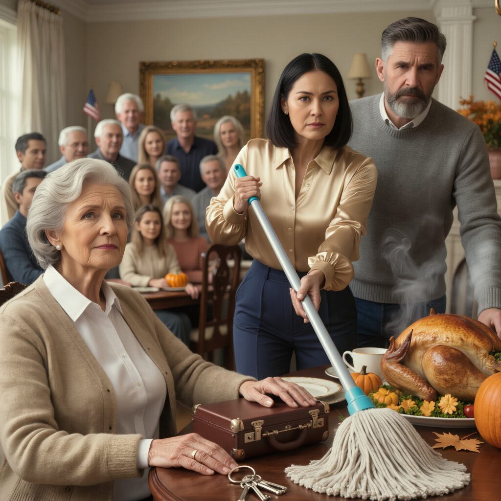 At Thanksgiving dinner, my daughter-in-law handed me a mop. “Stop pretending you’re sick and clean up,” she snapped. “Then you can eat off the floor.”