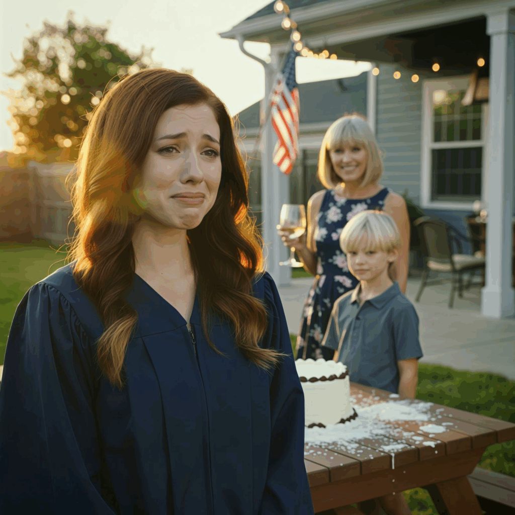 He shoved my graduation cake off the table. Frosting splattered across the patio, candles rolling under people’s feet. Then my ten-year-old nephew grinned and said, “Eat it off the ground, Aunt Daisy.” The whole table laughed. My mother laughed the loudest. I stood there, knife still in my hand, wondering how love could sound so cruel. I didn’t say a word, just walked out while their laughter followed me into the dark.