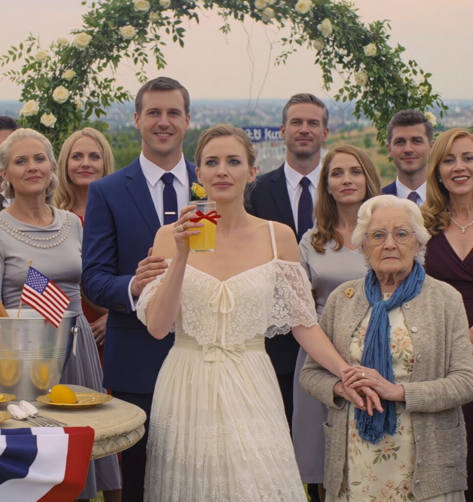 I crossed the lawn the way you cross a room in a dream—faster than you remember deciding. People made space in that very American way, polite and curious and pretending not to stare. A loop of red-white-and-blue bunting from last night’s rehearsal barbecue had come loose from the lemonade tub; it brushed my dress like a small wave.
